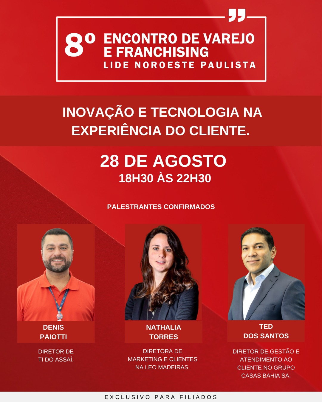 Filiado Lide Futuro pode ver e rever com exclusividade os eventos pelo APP do Lide. Para participar dos eventos, os(as) filiados(as) devem confirmar presença pelo APP.